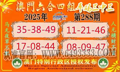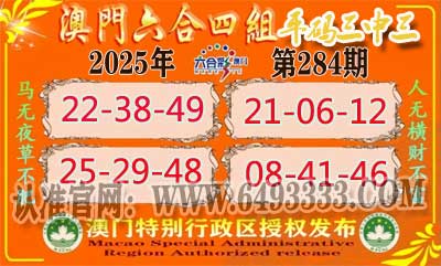 准284期:《澳门六合》四组③中③ 【22-38-49】 【