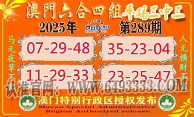 准257期:《澳门六合》四组③中③ 【
