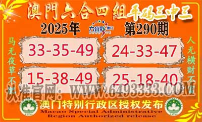 准实力实力是保证我们久战六合基础,就在这里简简单单的资料,却是你一生的辉煌开起,如果你有坚定的跟我们赚大钱的决心,我们实实在在万人见证的超强精准资料,是你所向无敌稳赚彩金的天下!一份稳赚的资料改变您。290期:《澳门六合》四组③中③ 【33-35-49】 【24-33-47】