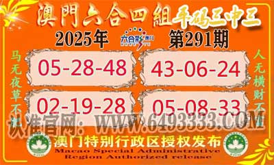 准实力实力是保证我们久战六合基础,就在这里简简单单的资料,却是你一生的辉煌开起,如果你有坚定的跟我们赚大钱的决心,我们实实在在万人见证的超强精准资料,是你所向无敌稳赚彩金的天下!一份稳赚的资料改变您。291期:《澳门六合》四组③中③ 【05-28-48】 【43-06-24】